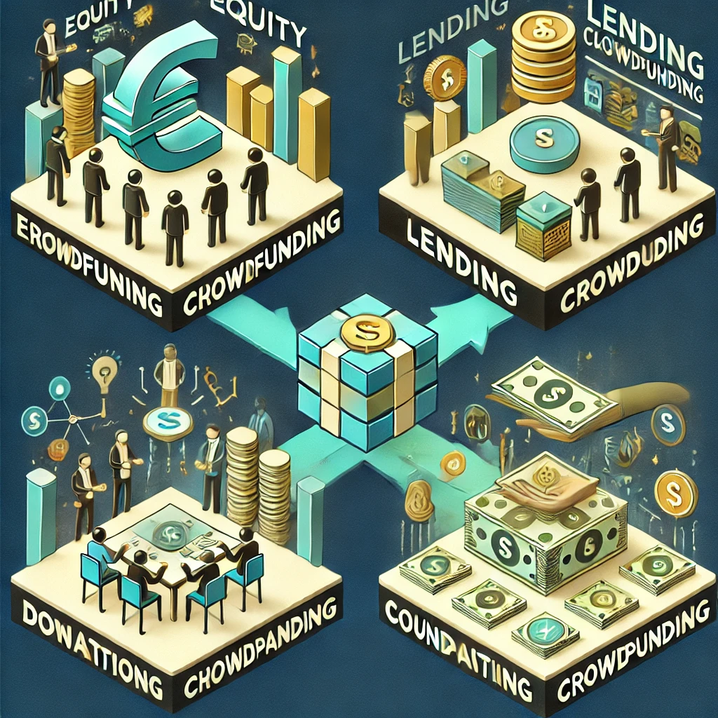 • Lending crowdfunding (o peer-to-peer lending): gli investitori prestano denaro a privati o aziende e guadagnano sugli interessi.